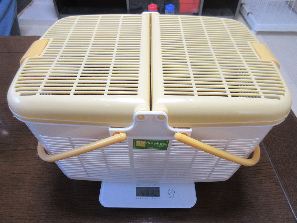 そしてこれは、先週の(火)の朝、私が佐世保旅行に出発した日の朝ですが、猫たちの体重測定をして、これは、アビのすけの体重測定の様子。