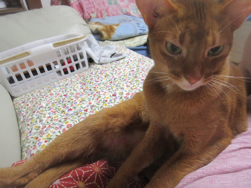 するとアビのすけ、舐め舐めするのをストップして、私の顔を見て、「何か文句でもあんの…?」みたいな顔…、「いえいえ、皮膚炎を舐めてないんだったら、文句はございませんよ。」と私。