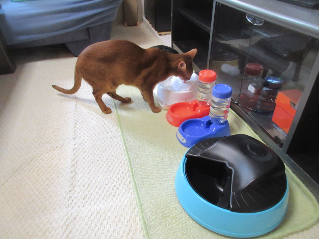 自動給餌器は完食されてた。そして、猫たちの自動給餌器をチェックしたら、両方とも完食されてて、アビのすけがほとんど食べてしまったんじゃないかな…。