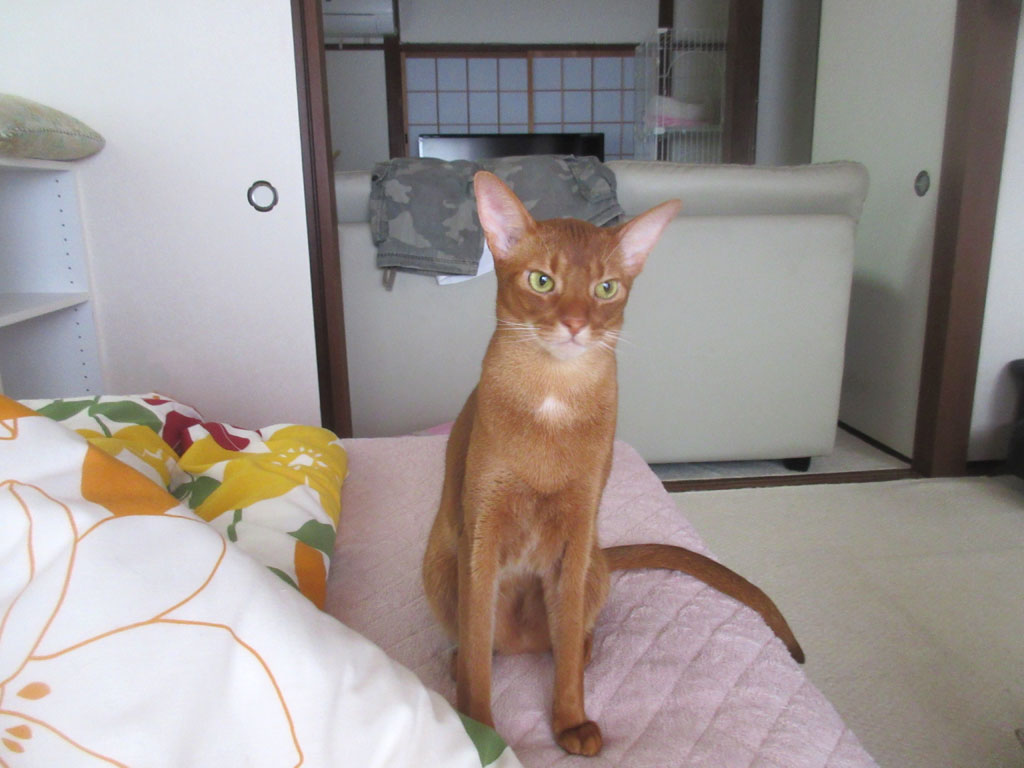 今日も私、夏風邪でダウンしていて、ほぼ1日中、ベットで寝ていたのですが、私が布団にくるまって寝ていた所に、お邪魔虫のアビのすけ君がやって来て…。