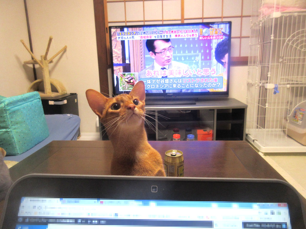 ブログを書いている私のパソコンの向こうで、アビのすけ君は何に注目しているの…?