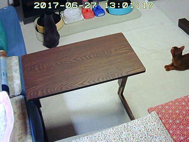 そしてこれは、今日の猫たちのお昼ご飯の様子…、外出中、スマホで撮った写真なので、画像が悪いのですが、猫たち、来ません…。