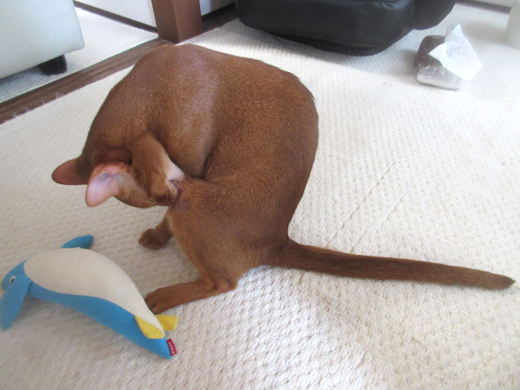 その後は、また、薬を塗った皮膚炎の患部を、ペロペロ、ペロペロ…。