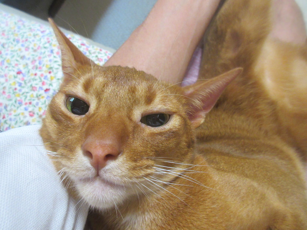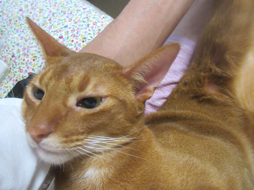 これは、今朝の事、アビのすけに朝ご飯を食べさせる前に、皮膚炎の薬を塗ろうと、アビのすけを取っ捕まえたのですが、アビのすけは、ご飯が食べたくて、食べたくて、大騒ぎ…。(笑)