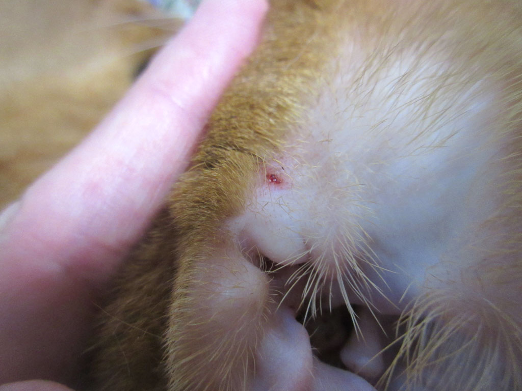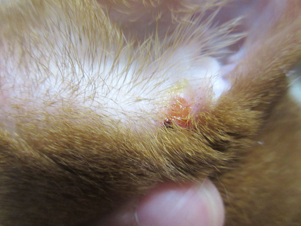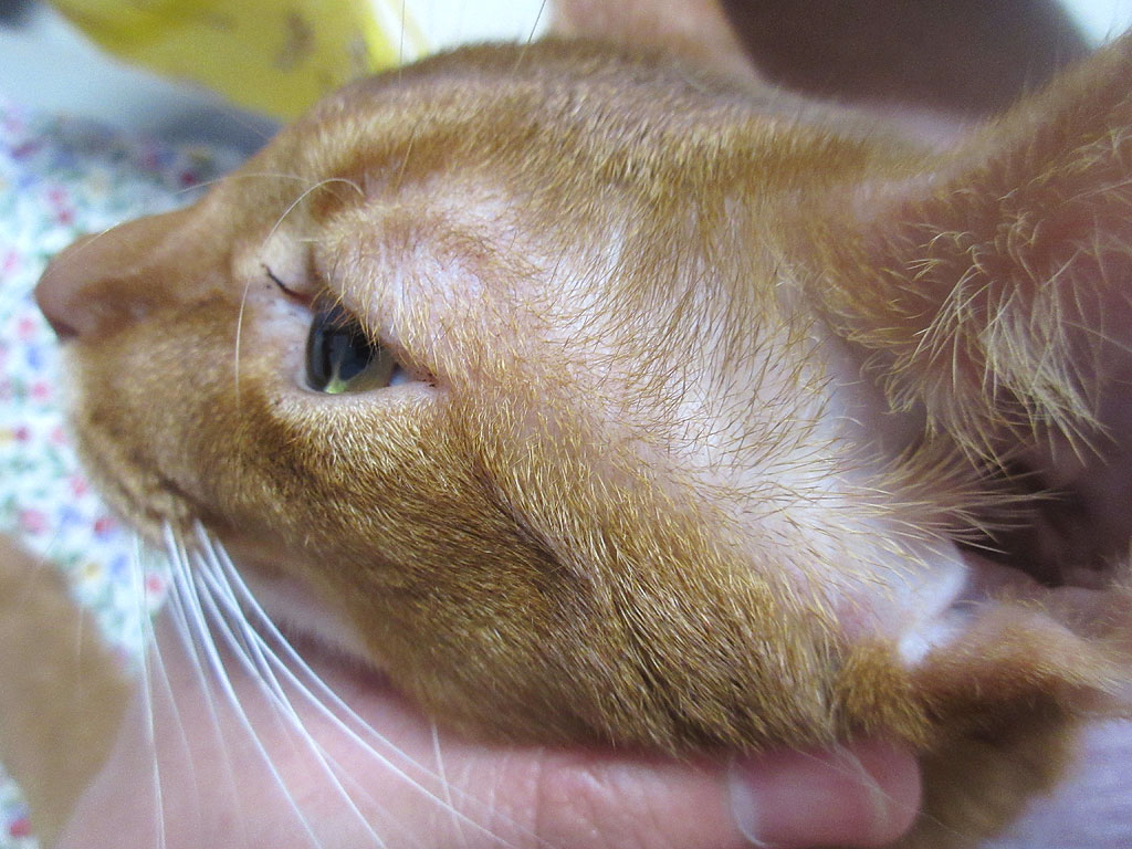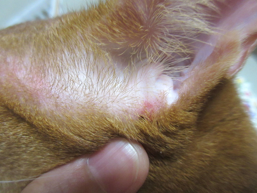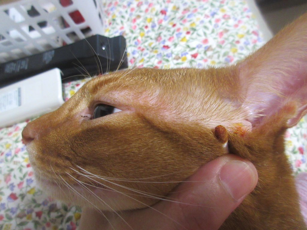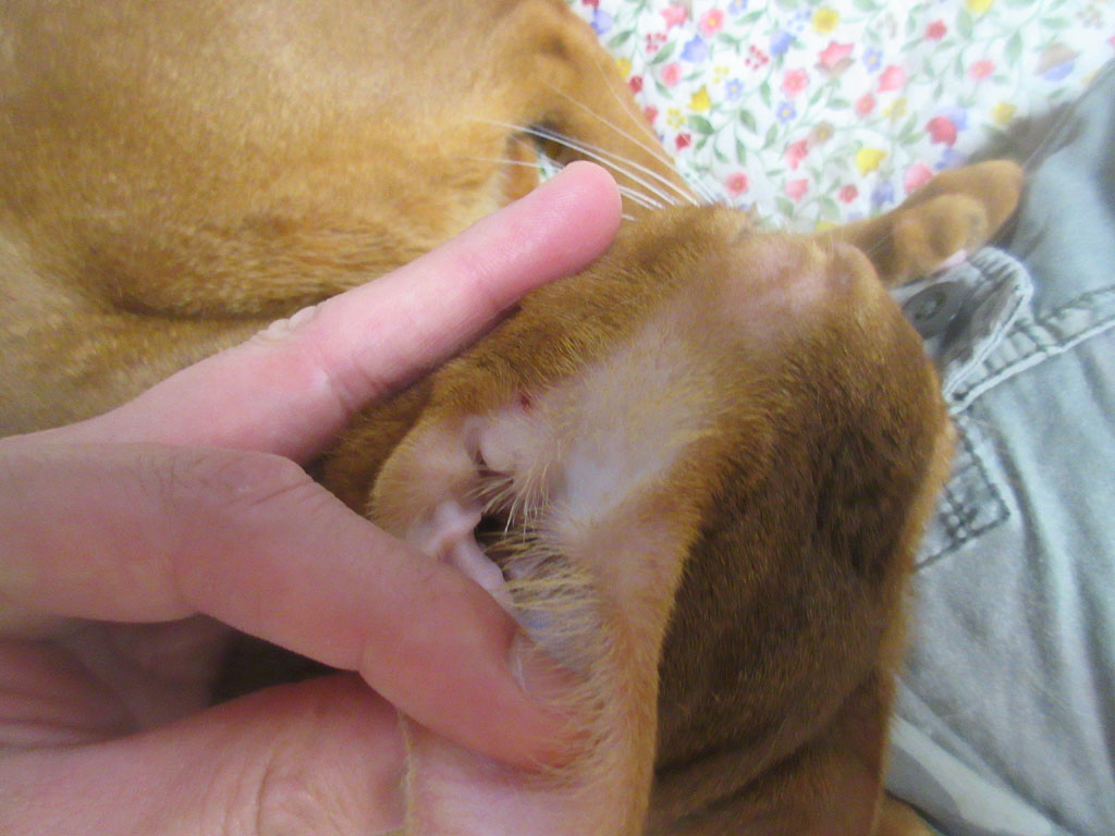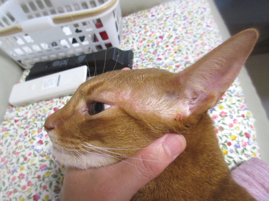 ちょっと振り返ってみますと、そうそう、アビのすけの耳のこの部分のかさぶたを剥いたんだった…。