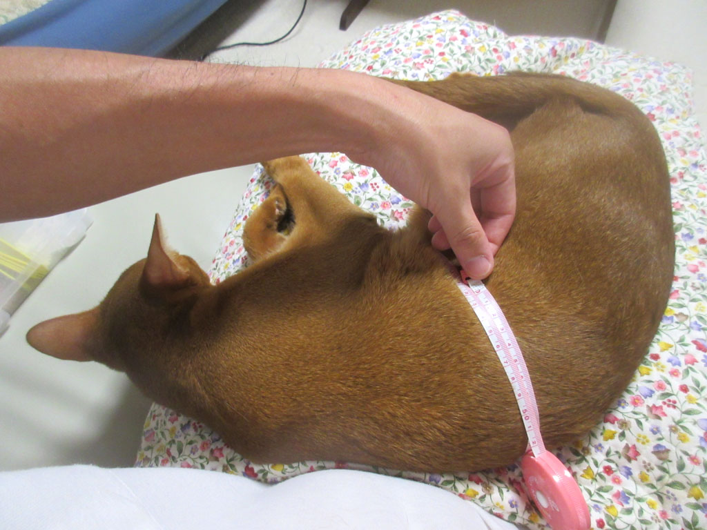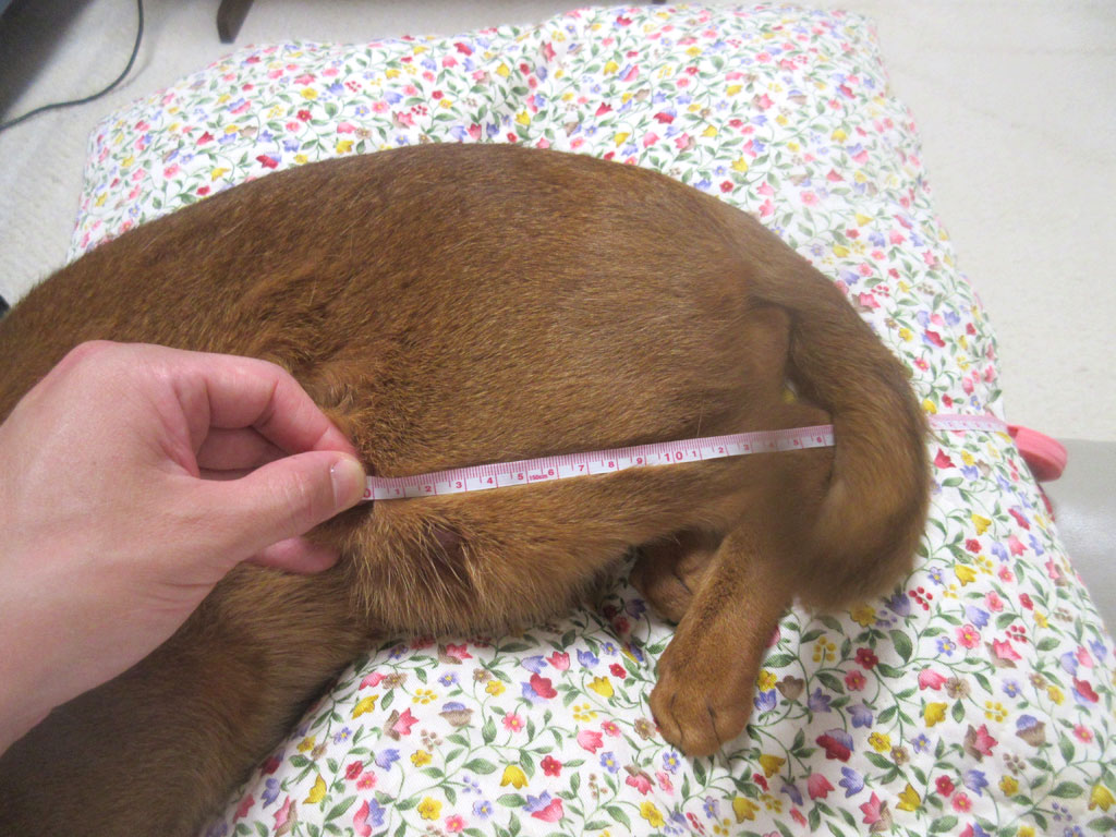 そして、アビのすけの胴回り…、一応、第9肋骨周りを目指して測りましたが、42cm…、ちなみに、毎回、前回の時の寸法は見ずに測る為、この数字が大きいのか、小さいのか、覚えていませんでしたが、何となく、大きい気がしたので、もう1回、測ってみると…。