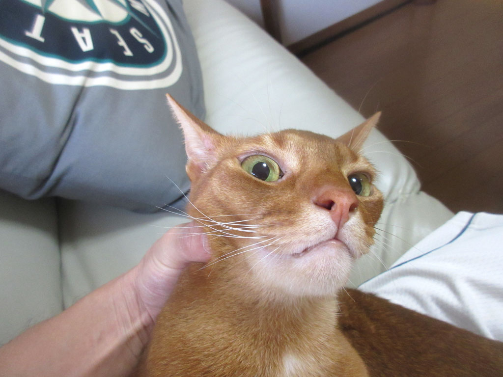 アビのすけは、ご飯の食べ方とかも雑で、顔面をご飯のお皿に擦り付けてる時もあって、なのでか、ロシ子の横顔にスリスリしても大丈夫なのですが、アビのすけにスリスリすると、私、顔が痒くなるのです…。