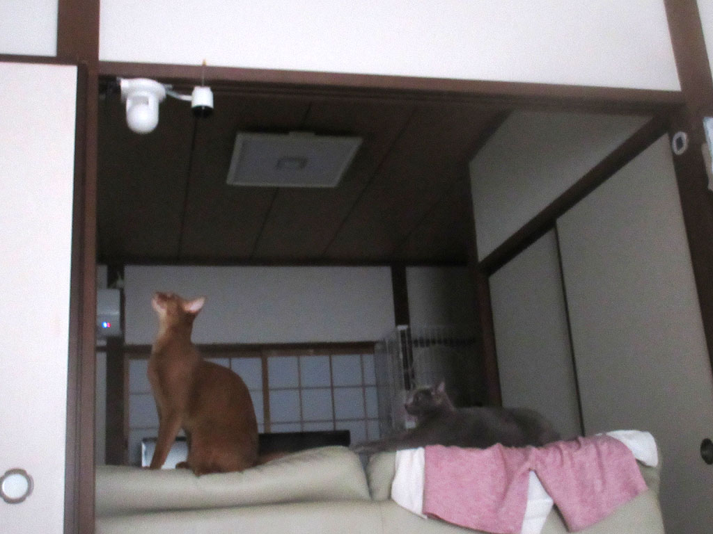 話は変わって、これ、昨日の朝の6時前の事、なんで私、目覚めたのかは覚えていませんが、アビのすけがガチャガチャしてたからかな…、気付けば、アビのすけがここで、「eRemote mini」を見上げてて、悪戯しそうな勢いだったで、取り敢えず、「こら~っ!」。