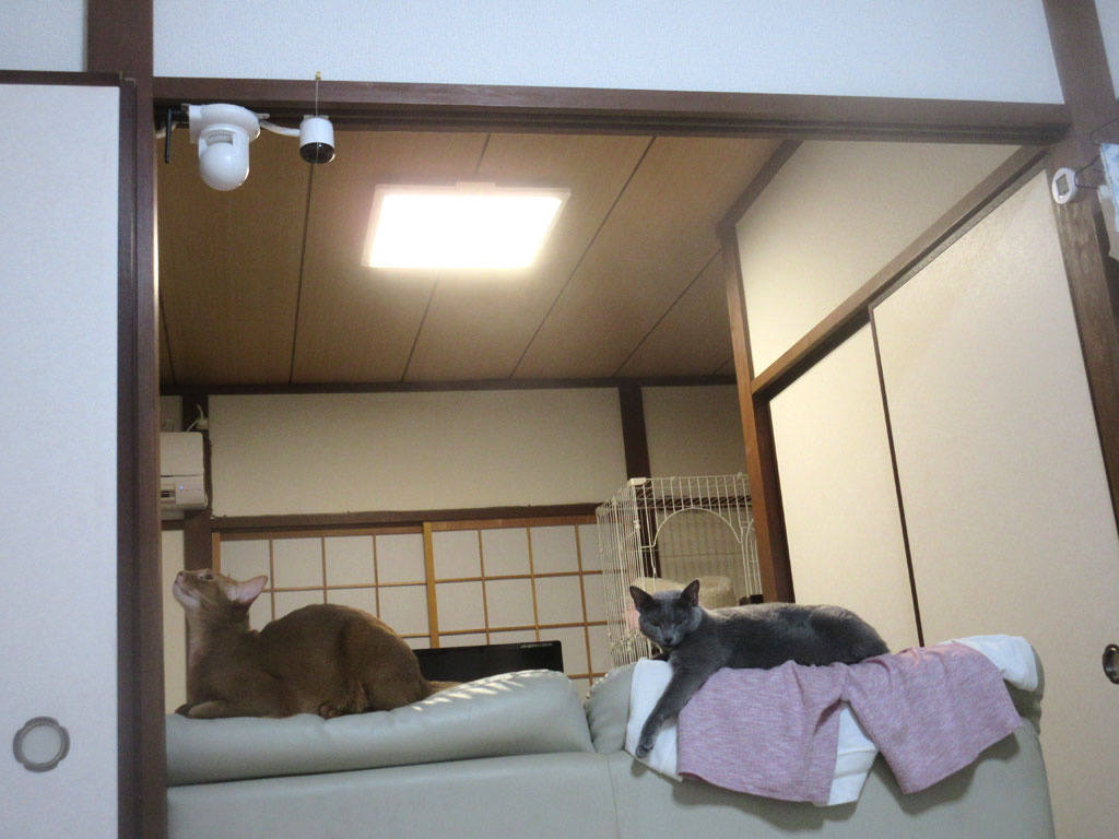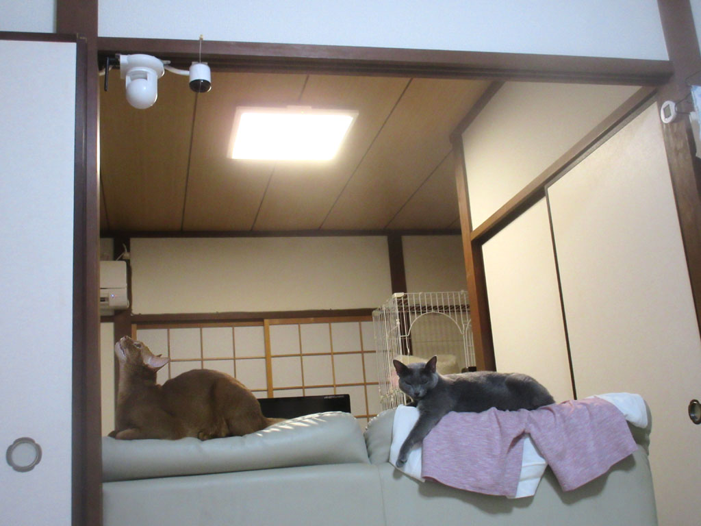 「eRemote mini」を糸と画鋲で支えて補強しているので、アビのすけにいじられると、両面テープが剥がれて、「eRemote mini」がぶらんとなってしまうので、取り敢えず、一喝してやったのです。