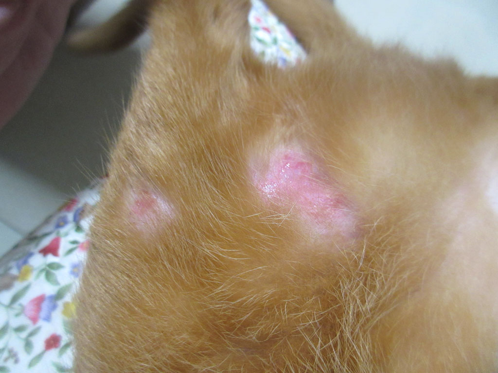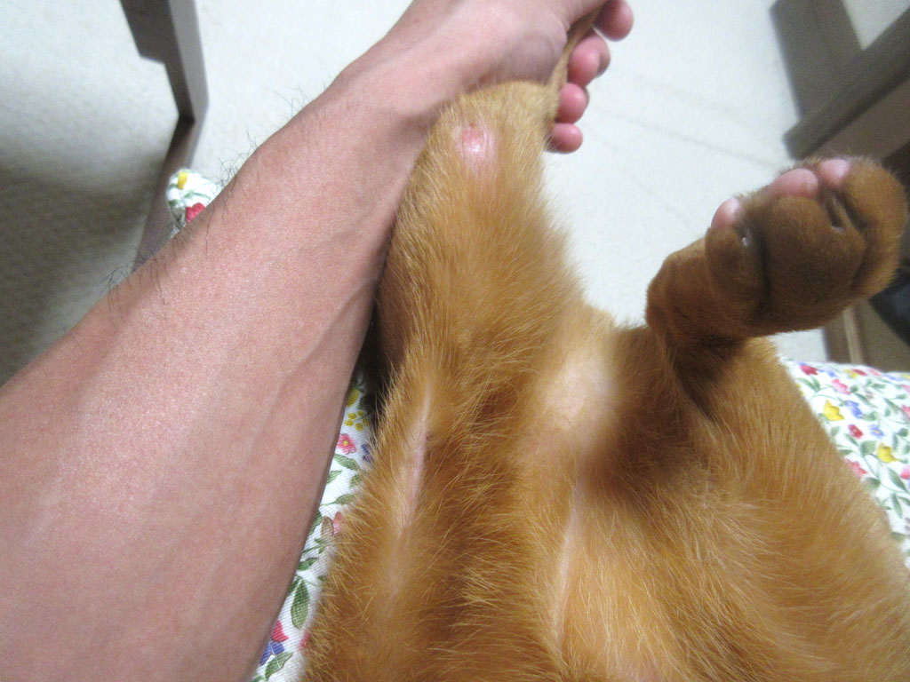 以前からの皮膚炎。そして、ちょっと分かりにくいですが、これ、以前から出来ている、アビのすけの皮膚炎…。