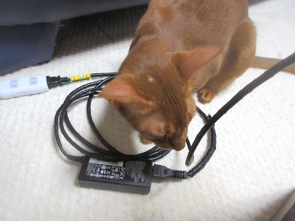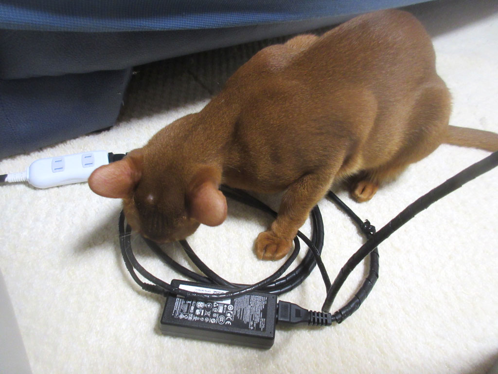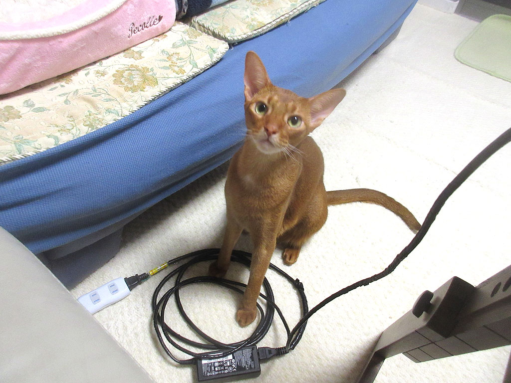 この直前、ロシ子がこのコードを噛み噛みしてて、アビのすけ、ロシ子を見習って、悪戯をしようとしてたのかい…。