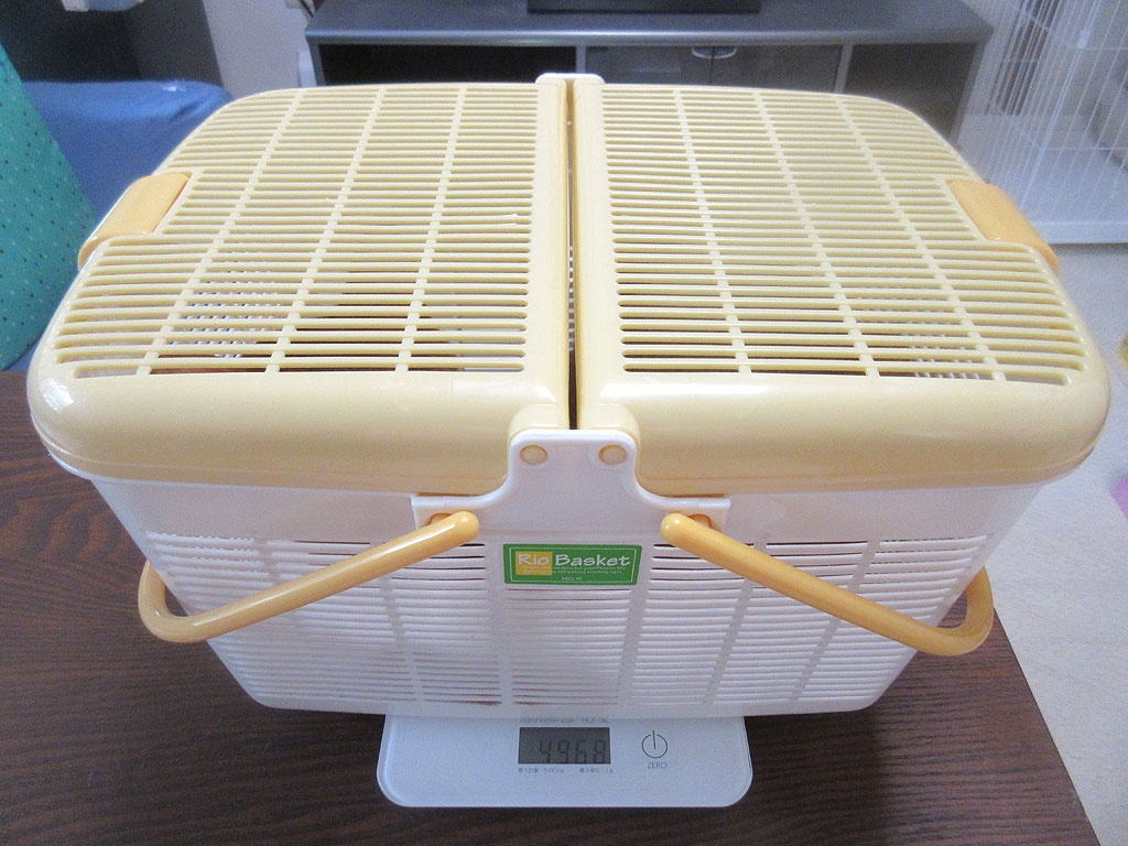 そして、同じ日、8/23(水)の朝にした、アビのすけの体重測定の様子も。