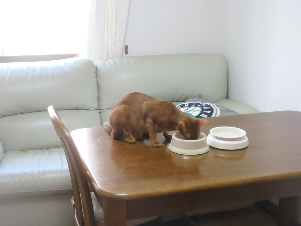 ロシ子、私の方を振り返って、「お父さん、アビのすけがご飯を食べてるよ。」って、不思議に思ったのかな…。(笑)