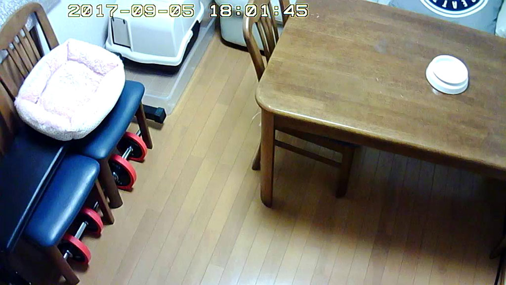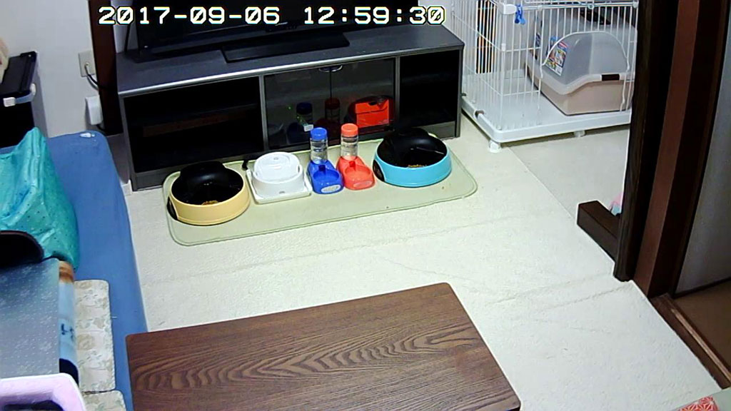 そして、余談ですが、私のおバカな話…、おとといの晩、1階をWebカメラで見ていたら、私はこの時、まだ、超・アビのすけの事を心配していて、この日の朝、私が旅行に出発する朝に、アビのすけが吐いてしまっていたので、えっ…、アビのすけ、また吐いたの?って、この画像を見て、思ってしまって…。