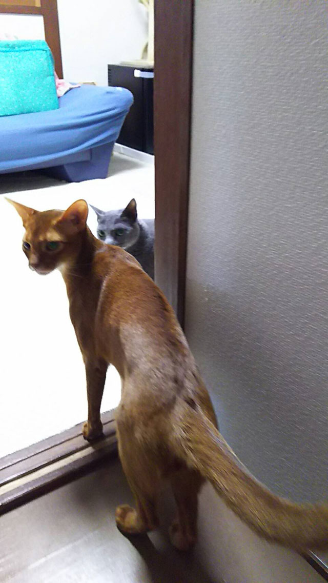 結局、ペットシッターさんからは、「ご飯・・・よく食べています。 補充しお水交換しました。 うんち・・・1回良好。 オシッコ・・・1回。 太ったアビシニアンは可愛くないので、今がちょうどよいです。 むしろロシちゃんの方がふくよかかも? 2匹とも、太ってはいないです。」との事で、ペットシッターさんのおかげで、とっても元気になった私だったのです…。(恥)