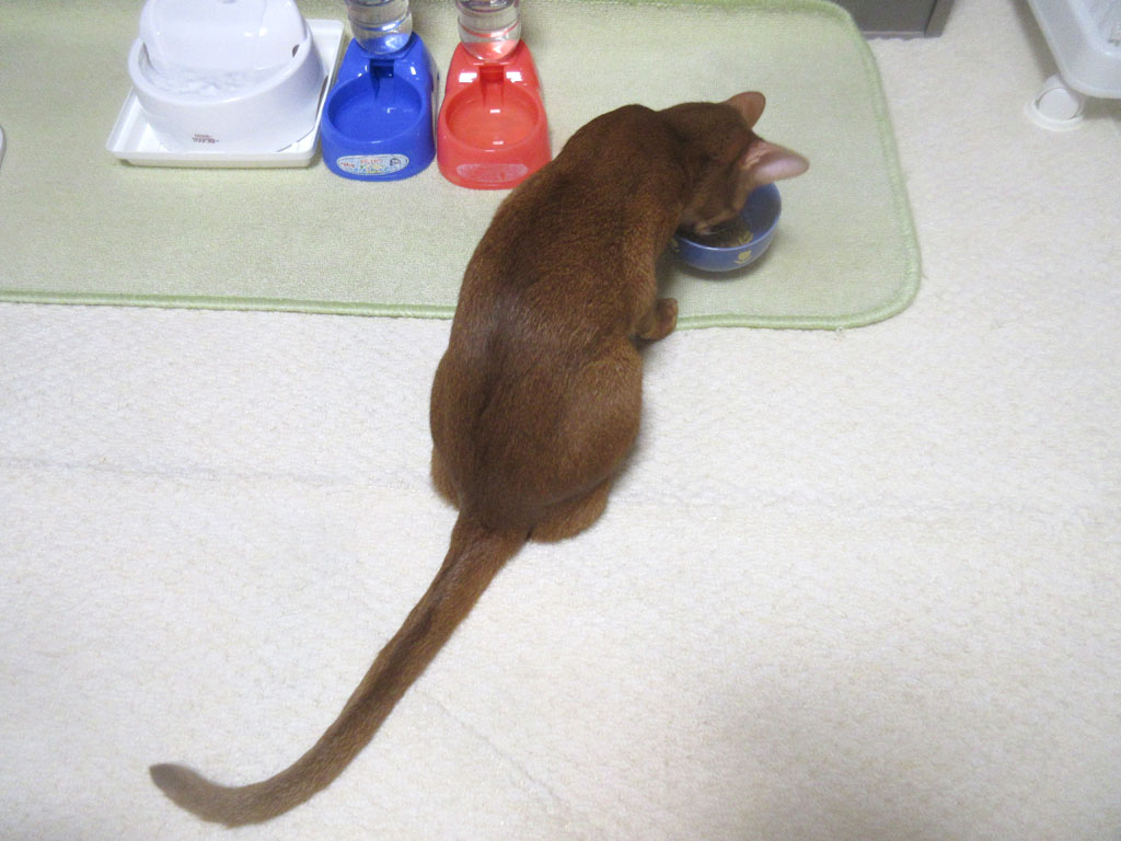 これは、9/1(金)の、療法食の晩ご飯を食べるアビのすけ君…、この時は、まだ、アビのすけは療法食が大っ嫌いで、完食なんてとんでもない…、食べさせるのに苦労していたんだった…。