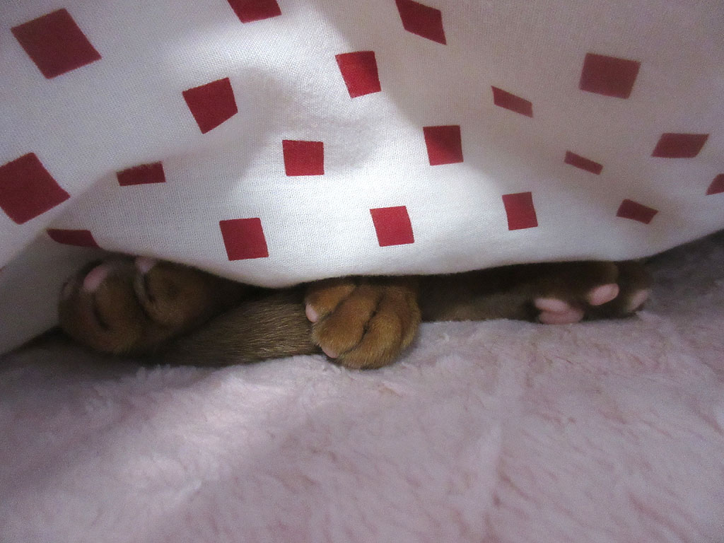 はは〜ん…、アビのすけ、また、布団に潜り込んで、寝てやがるな…。(笑)