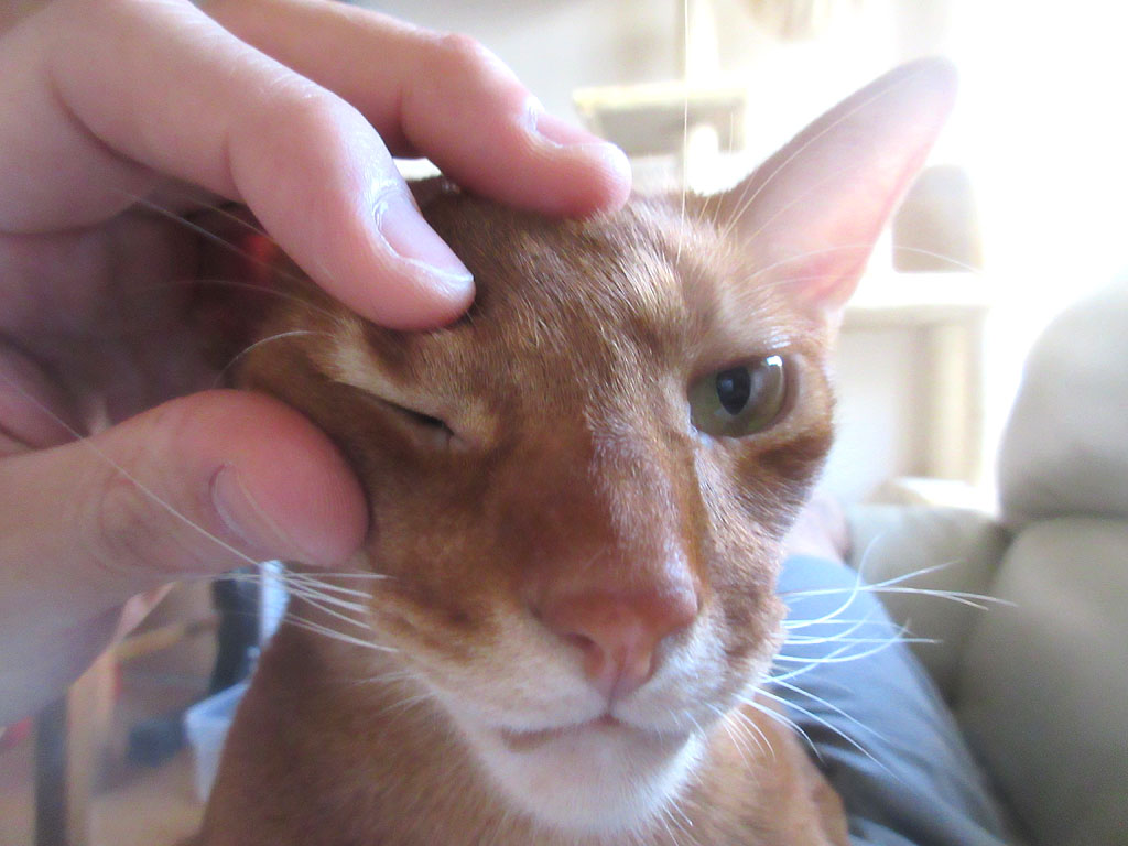 私がソファーで横になったら、私の胸の上に乗って来て、それで、アビのすけを撫で撫でしてあげたら、気持ち良さそうな顔をして。(笑)