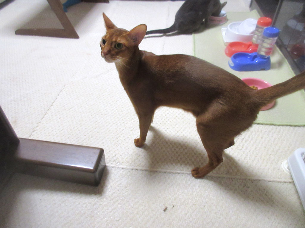 落ち着きのないアビのすけ君…、アビシニアンの特徴かな…、やっぱり、気になって、こっちを振り向いた。