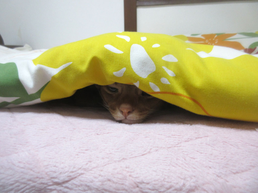 私が布団から出ても、アビのすけはそのまま、2度寝モード…、本当に君は、のんきでお気楽な猫ちゃんだね…、寝坊助なアビのすけ君。(笑)