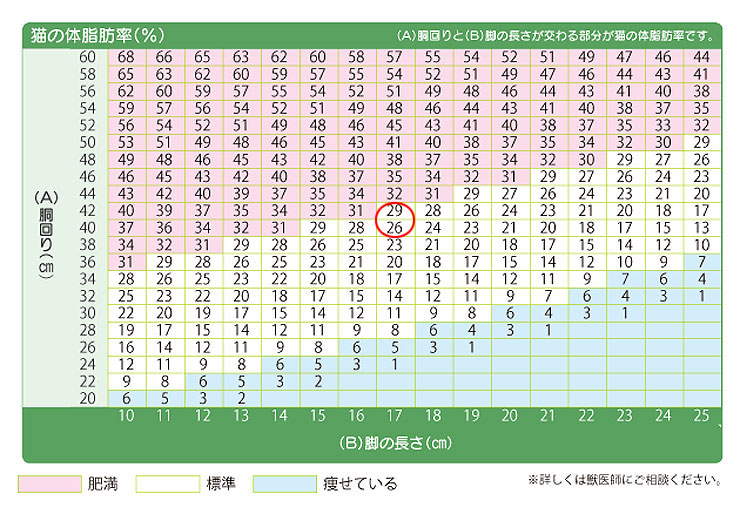 そして、それらの数字を表に当てはめてみると、アビのすけの体脂肪率は27.5%でした。