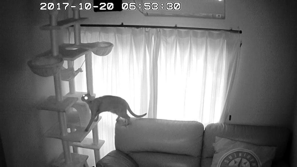そして、何か、変な写真の順番になってしまいましたが、これ、おとといの早朝のアビのすけ君…、いつもは寝坊助のアビのすけが、この日は珍しく、早朝からウロウロしてました。