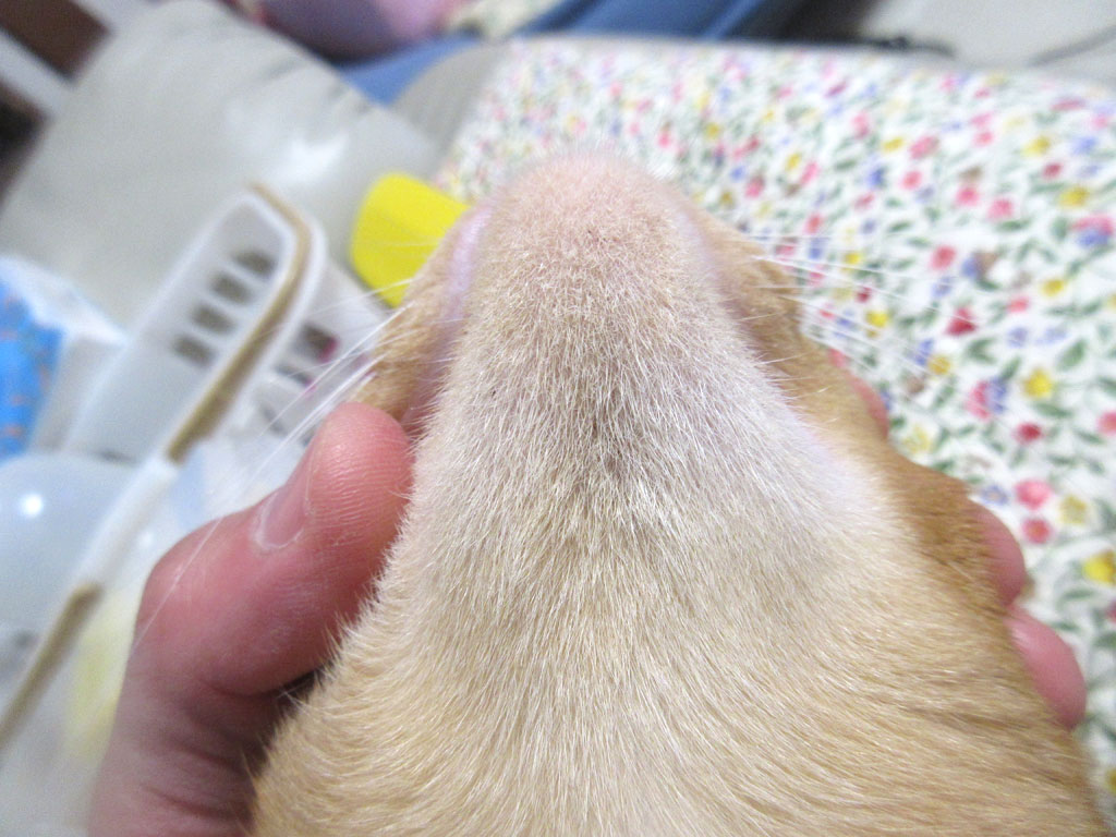 我が家のアビのすけは、鼻水かよだれか、とにかく、鼻の辺りが常にべとべとなんです。(涙)