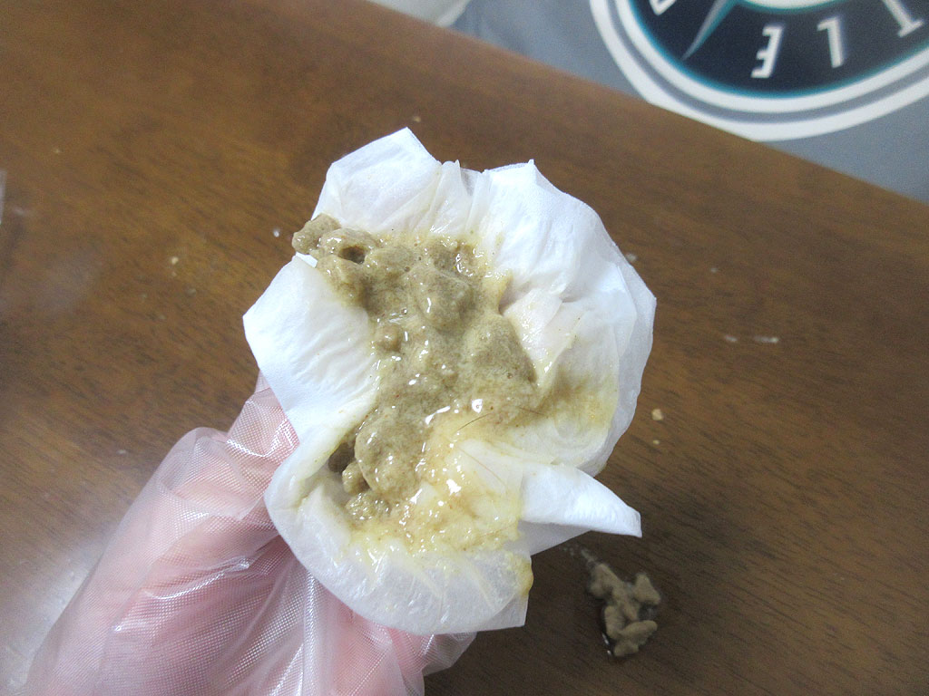 そして、アビのすけのゲボをピックアップ…、やはり、抜け毛はなく、朝ご飯だけ…。