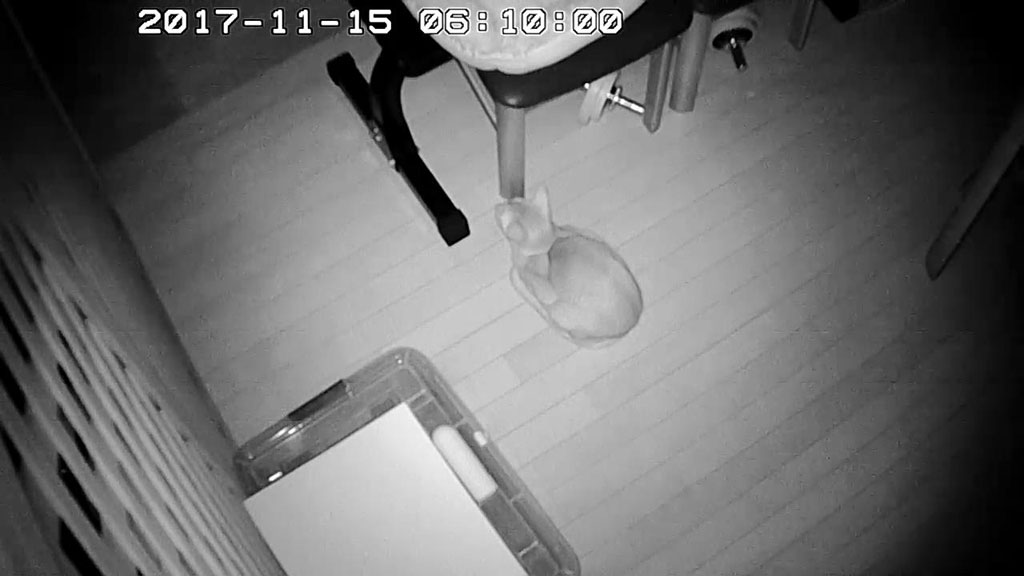 そして、「eRemote mini」で電気を消してやったら、手を舐め舐めしている、幻想的なアビのすけのシルエットが…。