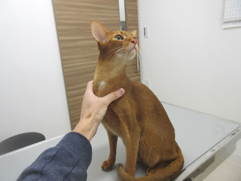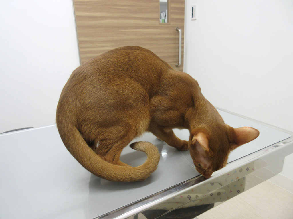 そして、診察台の角っこでスリスリ…、こんなおバカなアビのすけですが、とってもかわいい奴なのです。(笑)