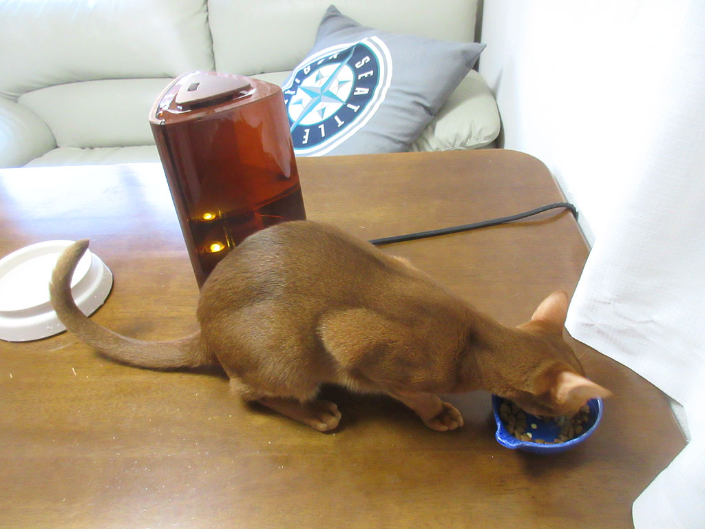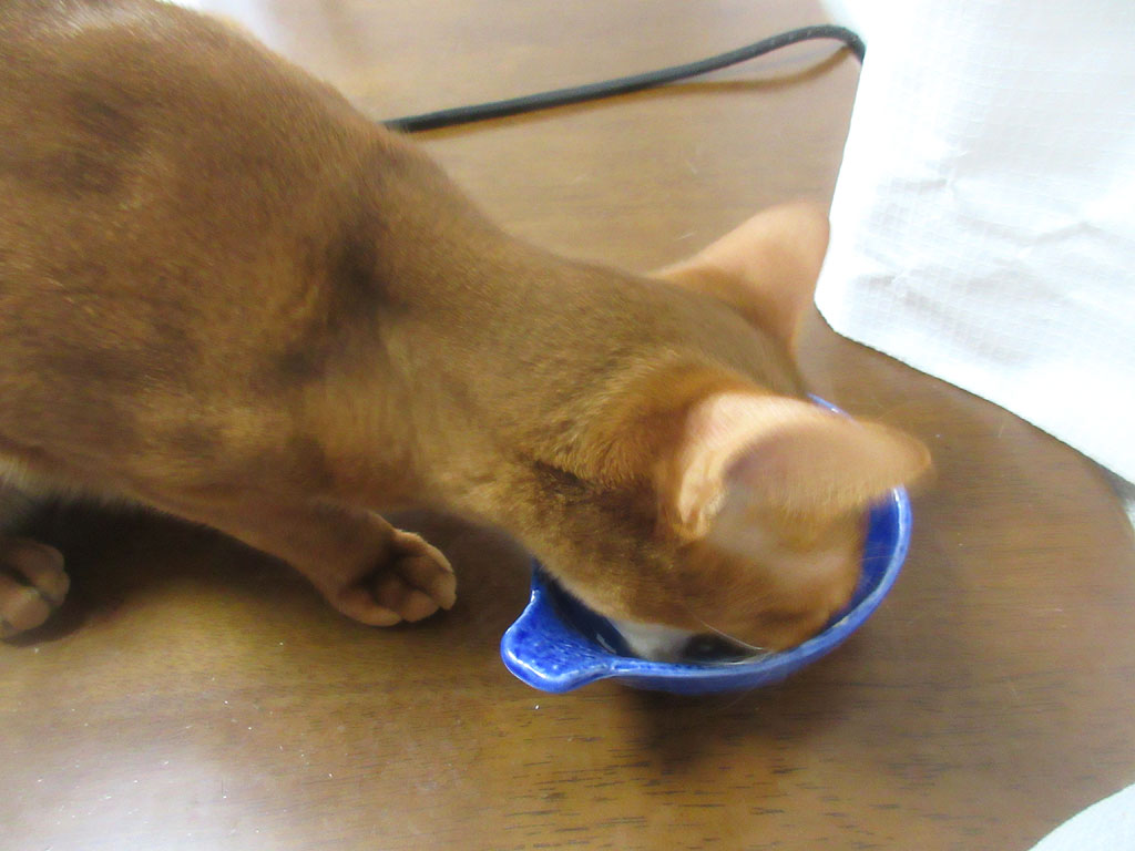 多分、お皿の種類から判断すると、2回分けご飯の2回目ご飯の時だったと思いますが、ロシ子アビのすけも、ご機嫌に食べてくれてたみたい。(笑)