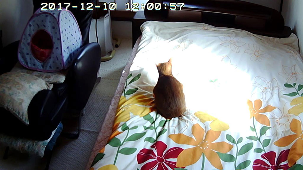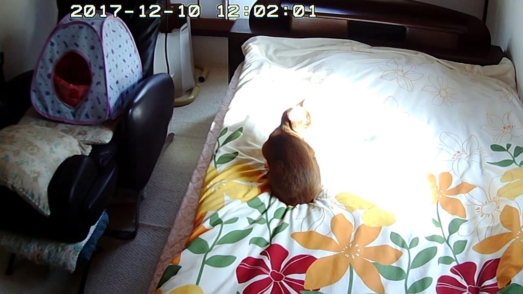 2階にいたアビのすけ。話は変わりまして、これ、昨日のお昼のアビのすけ君…、1階にアビのすけの姿が見えないなぁ〜、なんて思って、Webカメラで2階を覗いてみたら、アビのすけがおった…。