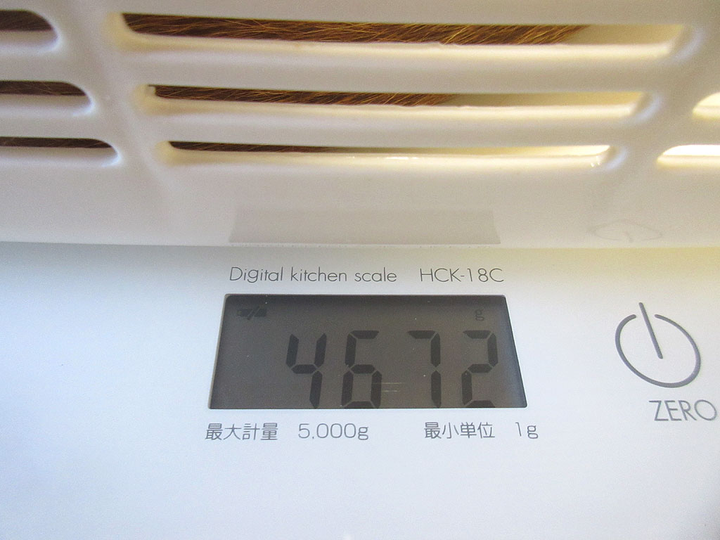 振り返ってみると、今年の8/1に、過去最重の5,057gを記録してしまった、おデブ予備群のアビのすけが、その後の食事療法、不味い低分子プロテインを私に食べさせられた事により、先月の11/22の段階で4,547gと、4か月弱で510gも減ってしまったのですが、インドアに戻した結果、そこから125g、戻した感じ。