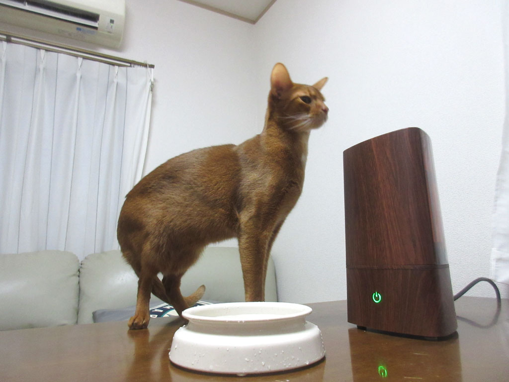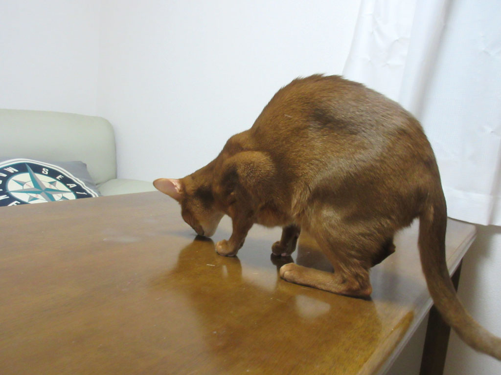 ペロペロしていたアビのすけ。ここの水を換えようと、お皿を台所に持って行ったら、アビのすけ、その部分をペロペロ…、たまにおかしな事をするんだよね、アビのすけは…。