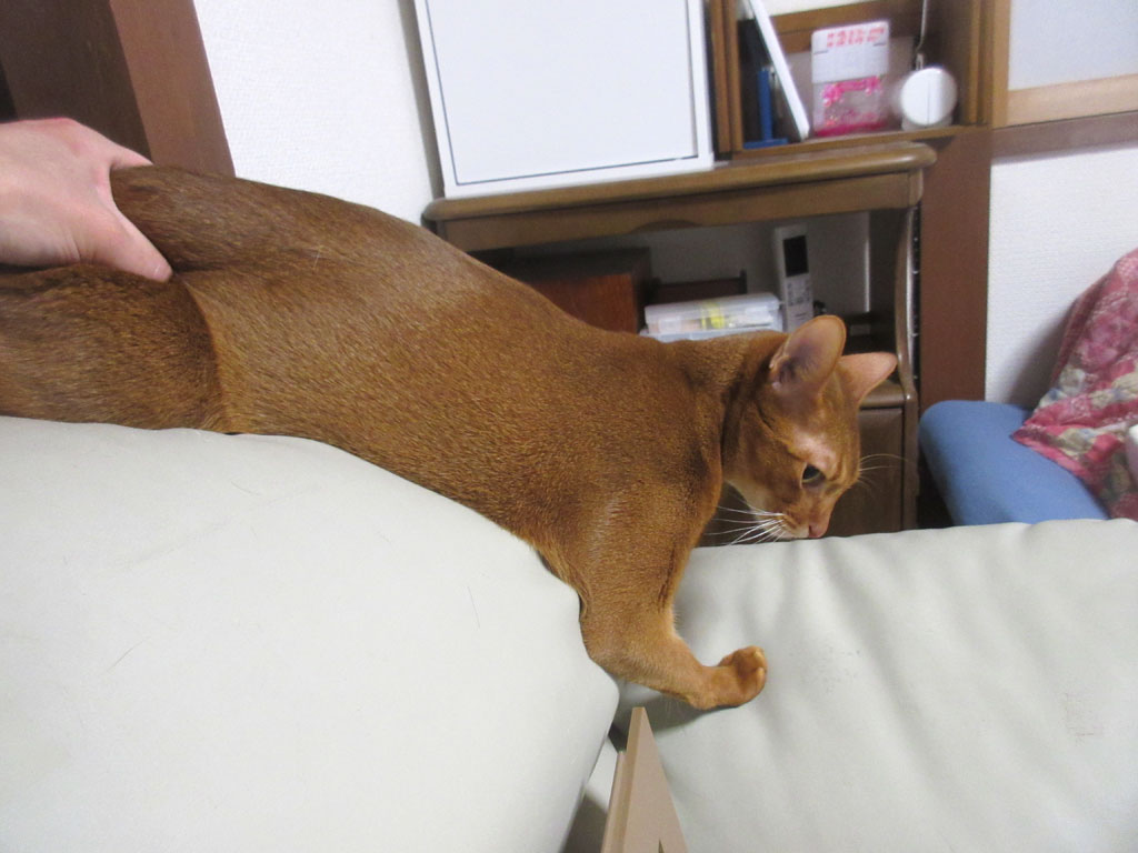逃がさへんでぇ~…、アビのすけ君。(笑) 腰の辺りをコリコリしてやると…。