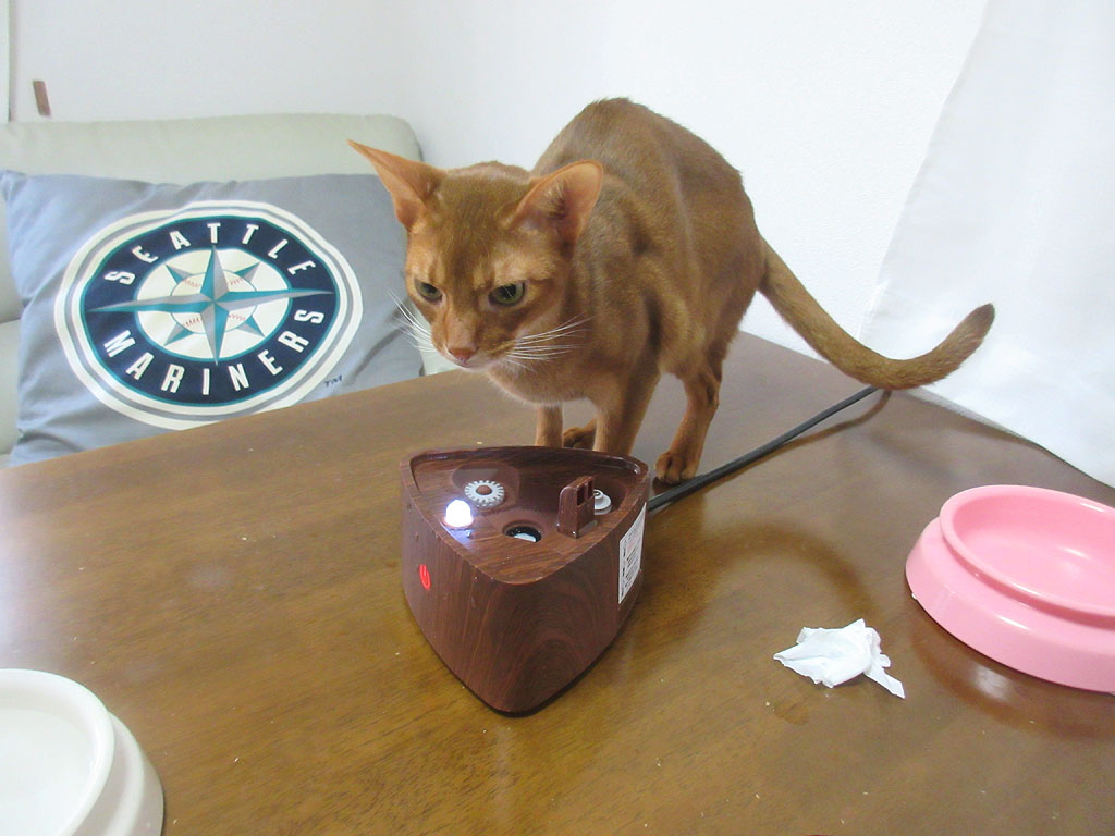 まぁ、加湿器の水に害がある訳でもないので良いのだけれど、その内に、段々とエキサイトして、ここに手を突っ込んだり、その手をパタパタとして水を撒き散らかしたり、そういう事をする可能性が大のアビのすけなので、ついつい、私、やめとけよ! って吠えてしまうのです。
