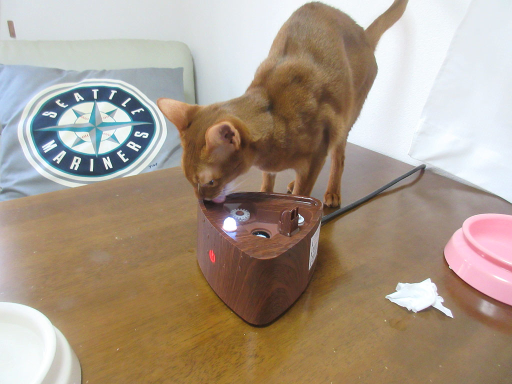 えっ、もう、そんなに日が経ったの…、って感じで、月日が経つのはあっという間ですが、これは、9日も前の1/6(土)の事、加湿器の水がなくなったので、タンクに水を入れに行ってたら、その隙に、加湿器の水を飲もうとしていたアビのすけ君。