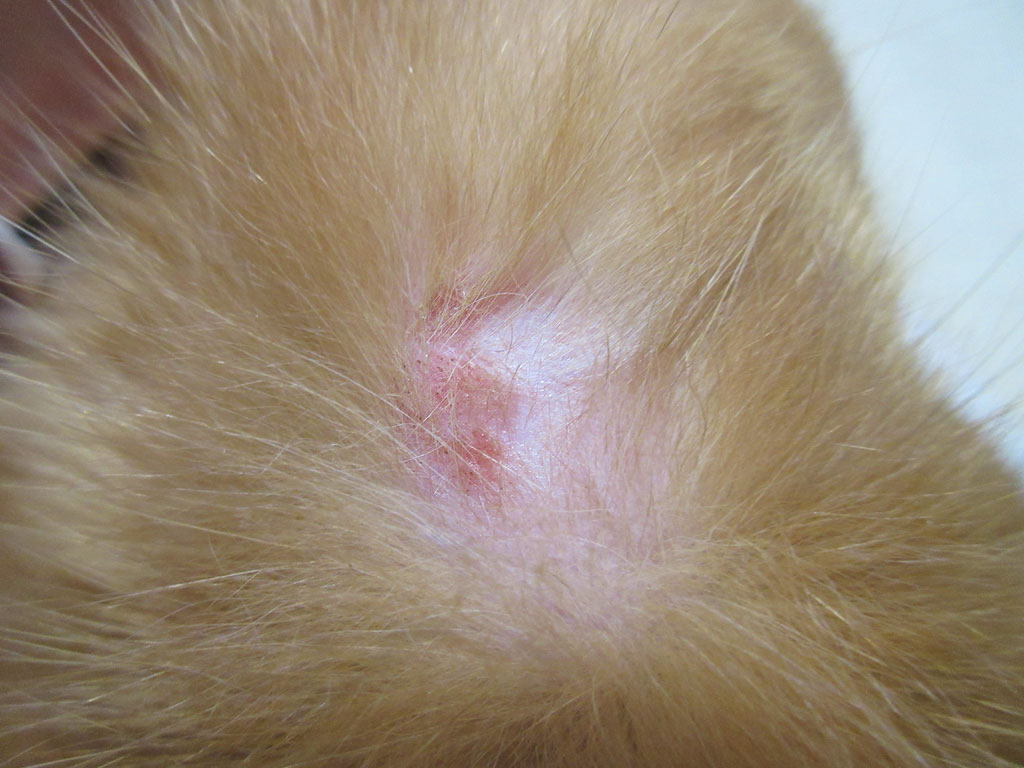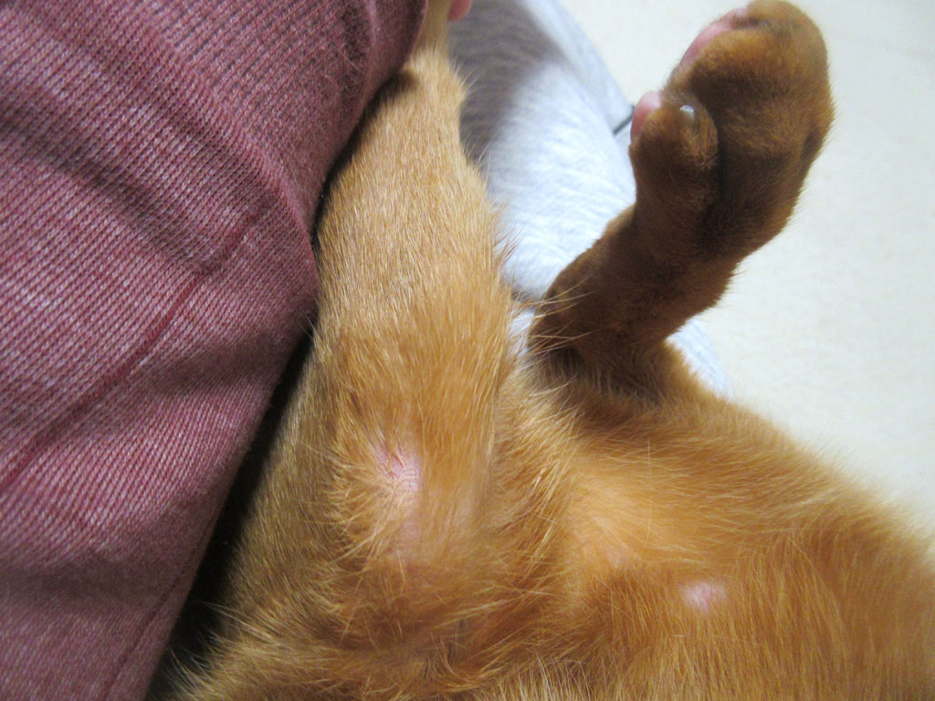 そしてこれは、3番目に出来た、アビのすけの右膝辺りの皮膚炎。