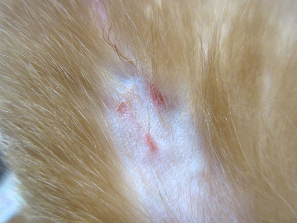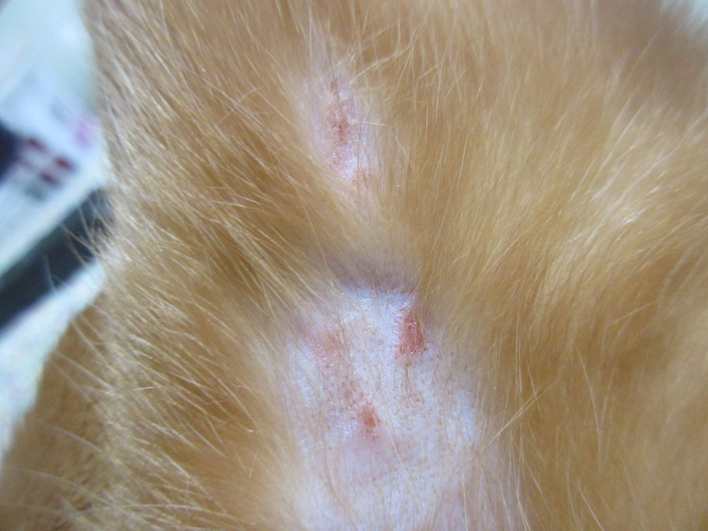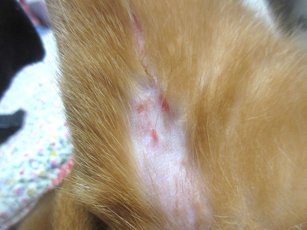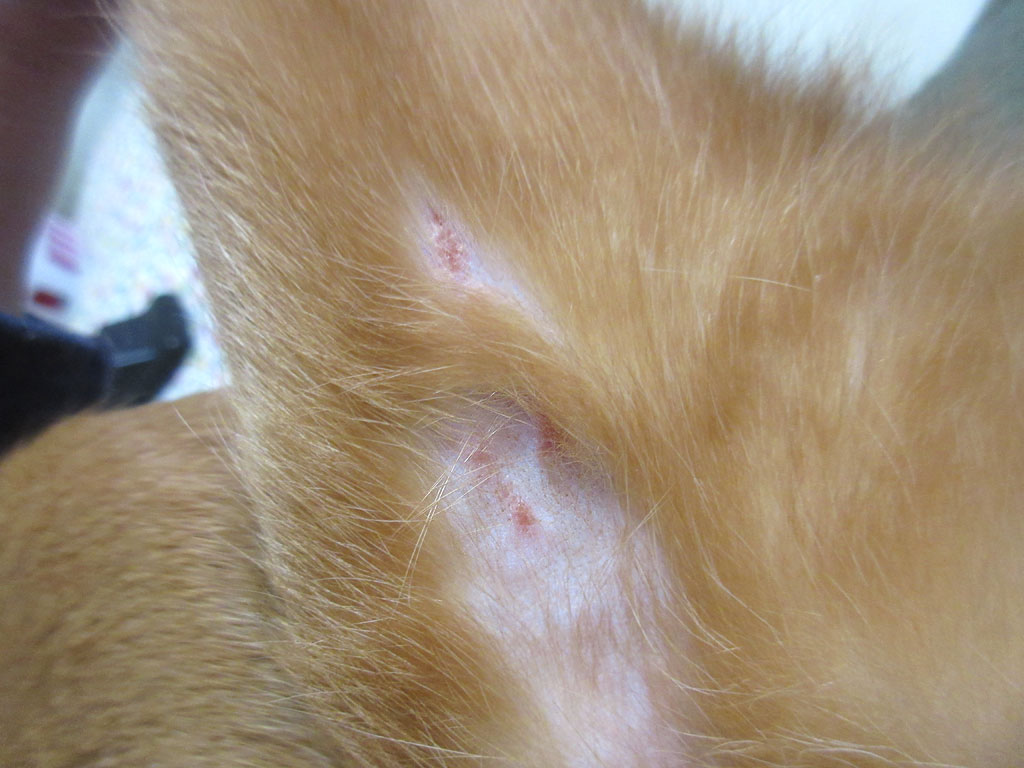 なので、昨日の晩、アビのすけの左足の内太ももの皮膚炎をチェックした時に、その上の部分の皮膚炎っぽいものも確認したのですが、ズバリ、皮膚炎だった…。