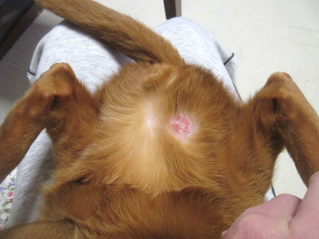 しか~し…、これは、前日に発見した、アビのすけの右下腹部の皮膚炎…。