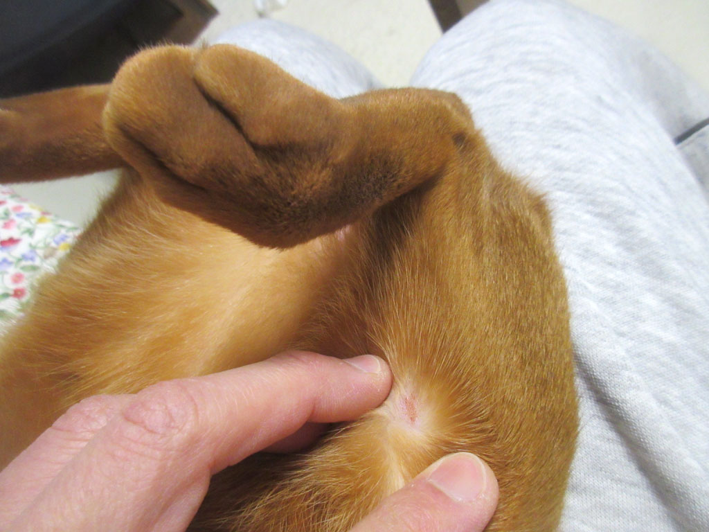 まずは、アビのすけの右下腹部に出来ていた皮膚炎…。