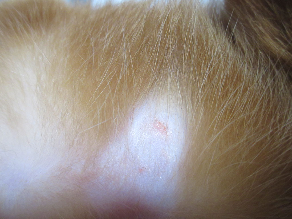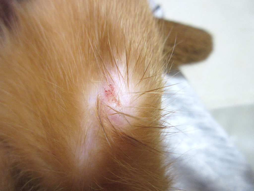 右下腹部の皮膚炎。と言う事で、まずは、アビのすけの右下腹部の皮膚炎…、もう、拡大写真のみで、初めて見る方には、どこの場所の皮膚炎やねん! って感じだと思います…。(汗)