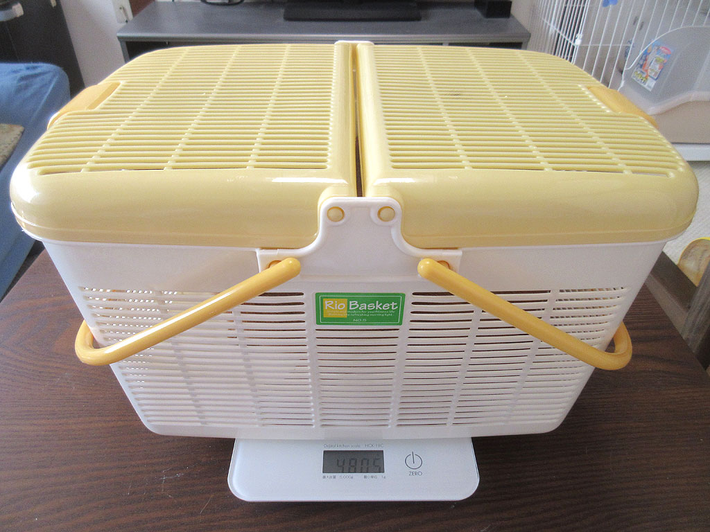そしてこれは、またまた、その翌日の3/14(水)の朝の事…、定例のアビのすけ君の体重測定の様子。