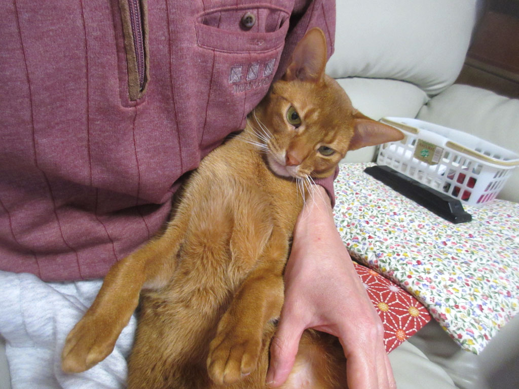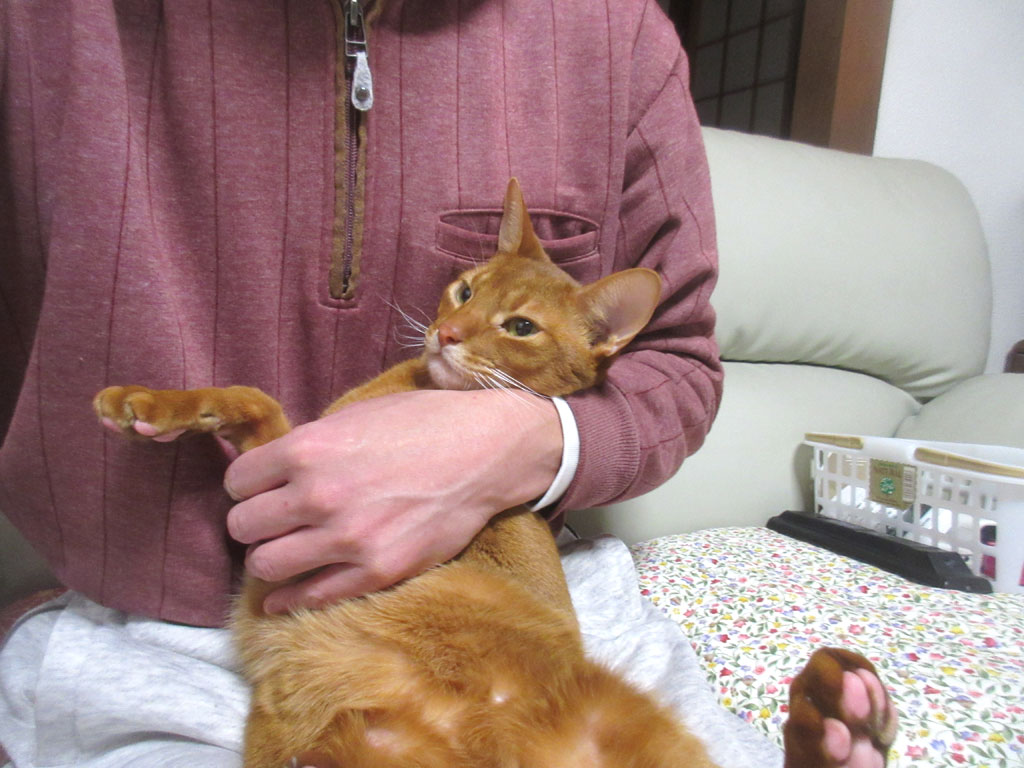 以前は、この段階で大騒ぎをしていたアビのすけですが、アビのすけも学んだ様で、諦めの境地でとってもおとなしくなりました。
