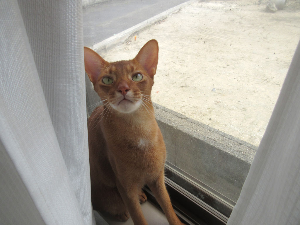 そして、家の中にいたアビのすけ君はこんな感じ…、確かに、見晴らしは良いし、猫たちがここに群がるのがよく分かる…、日中、南側のこっち側では、たくさんの太陽の陽を浴びる事も出来るし…。