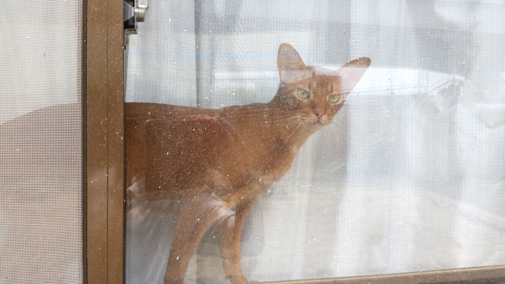 すると、今まではこんな行動をとった事がなかったのですが、アビのすけが後ずさりをして網戸のある方に…。