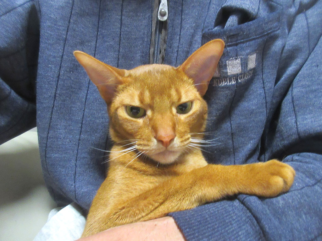 そしてこれは、昨日の晩のアビのすけ君…、そろそろ、皮膚炎11号も完治しているのではと思い、アビのすけを取っ捕まえてパシャリ。