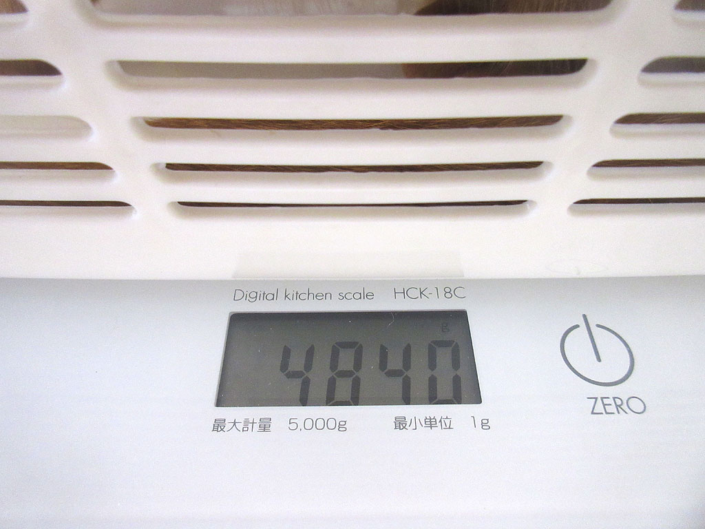 そしてついでに、これ、昨日の朝のアビのすけ君の体重測定の様子。