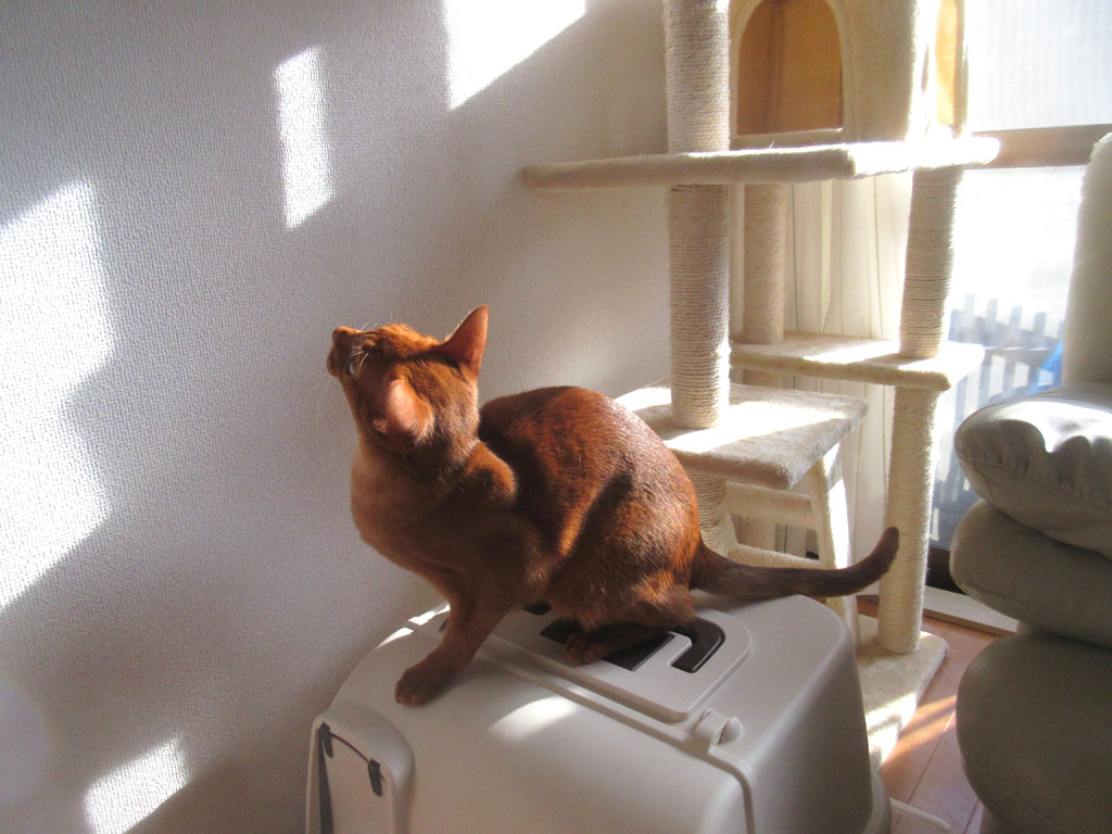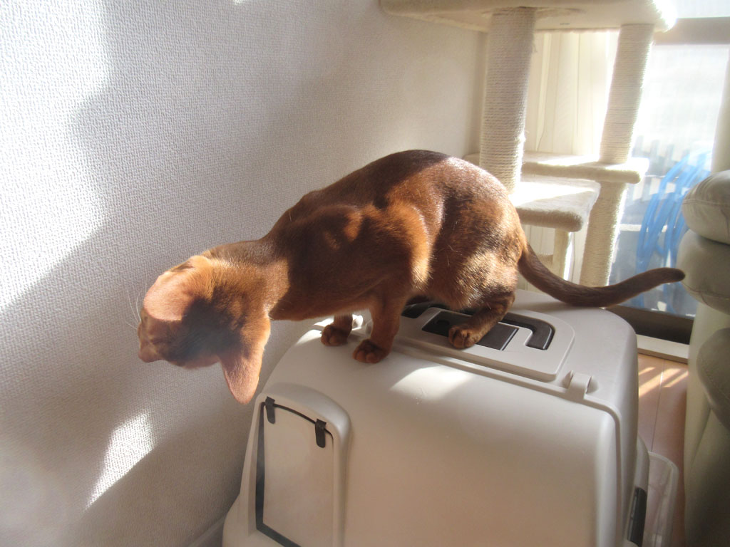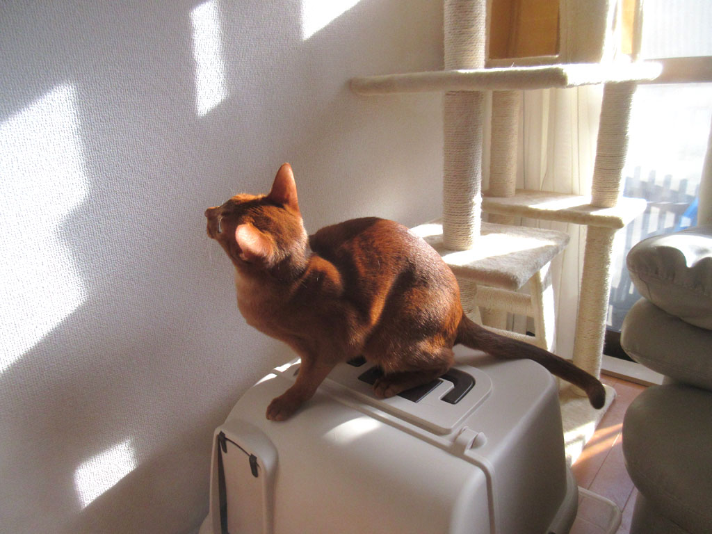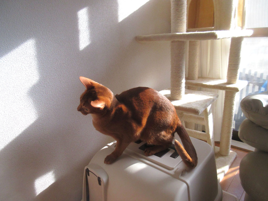 しつこいアビのすけ。でも、アビのすけはとってもしつこいので、この後もずっと、影に夢中になって大騒ぎをしていたので、朝の忙しい時間帯、アビのすけにいつまでも付き合っていられない私は、とっととこの場所を去ったのです…。(笑)