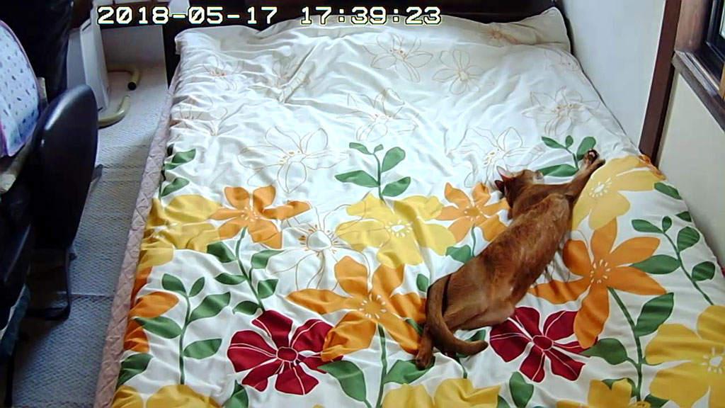 アビのすけ、伸びてま~す。これは、おとといの夕方のアビのすけ君…、今日の神戸は涼しく、肌寒い位だったのですが、この日、我が家の2階は、温度計によると30℃を超えていて、ここでアビのすけ、伸びてま~すって、男の子らしい感じで昼寝をしていましたよ…。